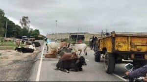 Mainpuri News:जीटी रोड़ पर आराम फरमा रहे आवारा गौवंश, कभी भी हो सकती है कोई दुर्घटना:बहुजन प्रेस