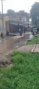 रास्ते में बारिश के जल जमाव से स्कूली बच्चों व आम जनता को हो रही परेशानी