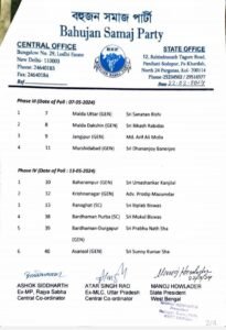 BSP News:बसपा ने पश्चिम बंगाल के 40 लोकसभा प्रत्याशियों के नामों की किया घोषणा