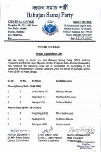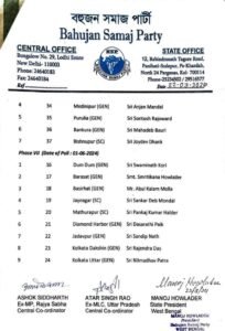 BSP News:बसपा ने पश्चिम बंगाल के 40 लोकसभा प्रत्याशियों के नामों की किया घोषणा