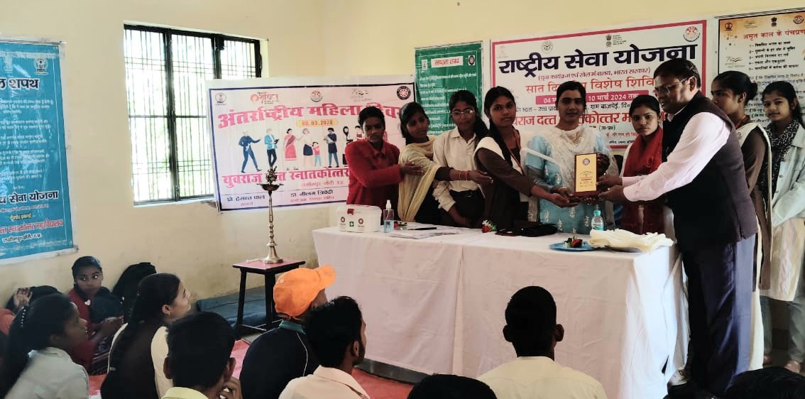 Lakhimpur News।युवराज दत्त स्नातकोत्तर महाविद्यालय ने दिनाँक 8 मार्च 2024 को अंतर्राष्ट्रीय महिला दिवस के अवसर पर राष्ट्रीय सेवा योजना के विशेष शिविर के पंचम दिवस में विचार गोष्ठी का किया आयोजन